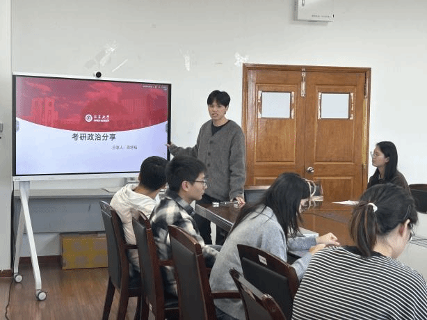 活动中,刘博文同学以“只争朝夕,不负韶华”为主题,分享了英语一和数学三的备考经验。在数学备考方面,他介绍了自己数学思维和学习技巧,并推荐学习资料,提出时间规划建议。在英语备考方面,他重点介绍词汇记忆、真题练习和作文专项学习的方法。高舒畅同学分享政治科目的备考经验,他详细介绍考研政治的题型构成、分数占比,以及他的复习规划和冲刺策略。迟琬茹同学分享199管理类联考的备考经验,她围绕会计专硕备考用书的选择、时间规划、答题技巧等方面内容展开介绍,并传授在备考过程中调整心态的技巧。活动最后,同学们与主讲人亲切交流,提出自己在备考过程中的疑惑,主讲人结合自身经验一一进行解答。同学们纷纷表示受益匪浅,对自己未来的道路有了更清晰的认知和规划。