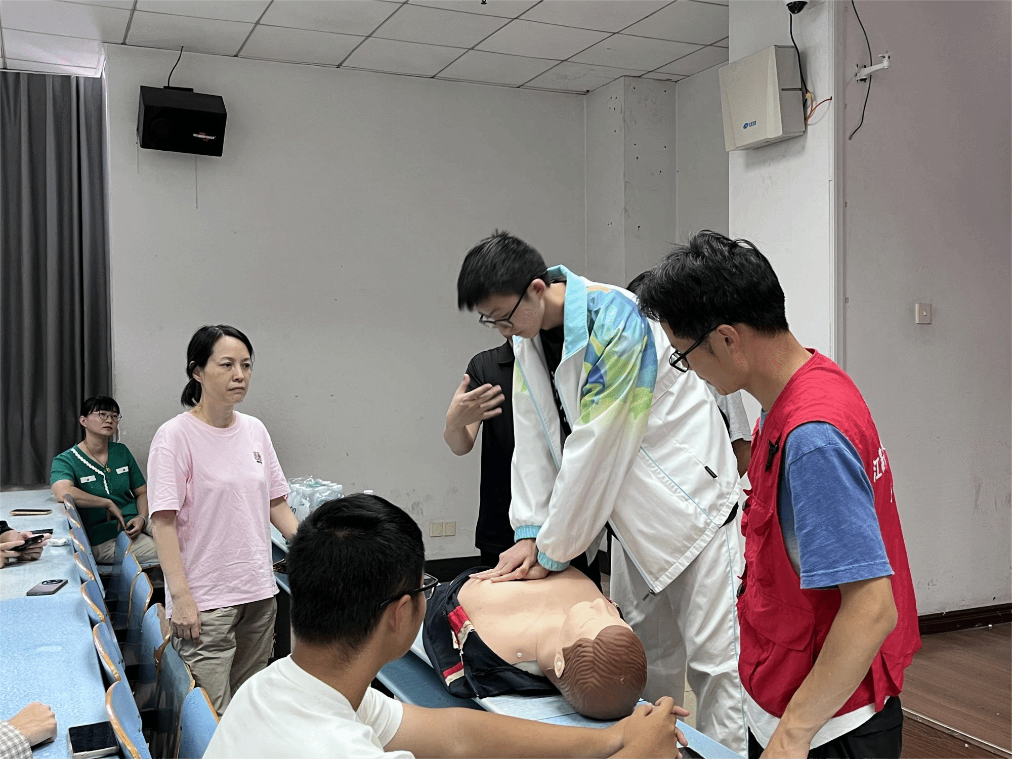 活动分为急救知识培训和中医养生知识两部分内容。许磊围绕急救知识,详细讲解了海姆立克急救法和心肺复苏具体操作步骤,并进行现场演示。阮园则聚焦中医养生知识,分享了中医养生小妙招。活动过程中,两位医生结合ppt讲解、现场演示以及观众互动参与等形式,活动现场气氛活跃,同学们的参与度与积极性高。