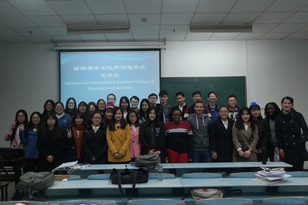 International business culture and communication exchange, hosted by Miss Yang, vice director of International Economy and Trade Department, was held November 9. Chinese students of IET 1301/1302, foreign students of IET2012/2013 who are from African students, South Korea, Germany attended this exchange.