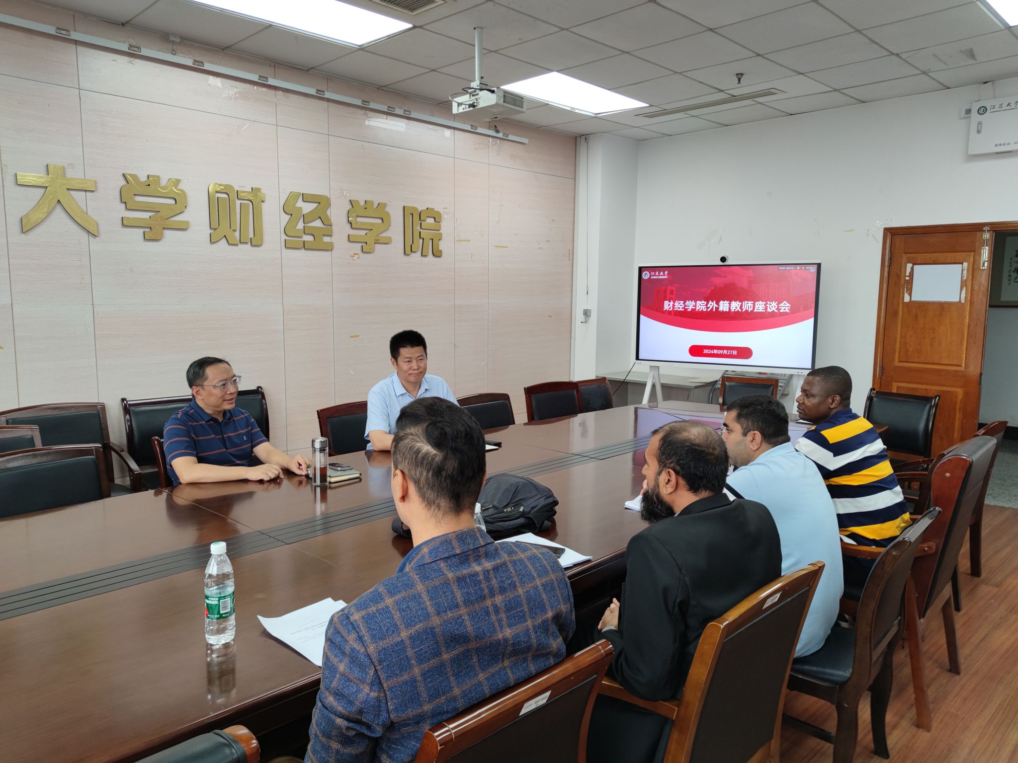 In order to further strengthen the management of foreign teachers and educate and guide them to successfully complete the assessment tasks during their employment period, on the morning of September 27th, the School of Finance and Economics held a symposium for foreign teachers in Room 1304C of Sanjiang Building. Wang Xiang, the Party Committee Secretary of the college, Hu Xuhua, the dean, and the college's foreign teachers participated in the symposium. The meeting was chaired by Wang Xin, the director of the college's Administrative Office.