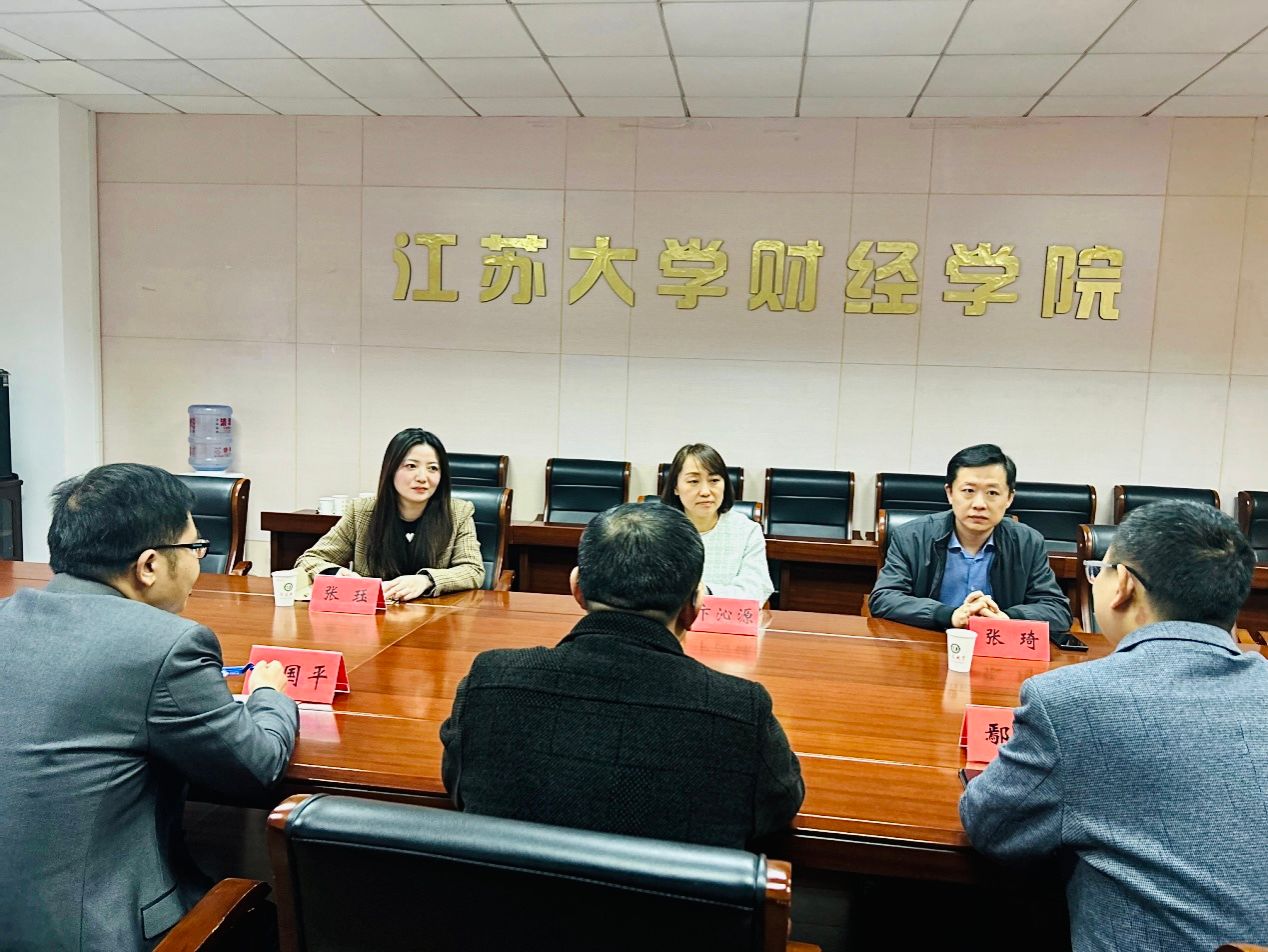 王祥简要介绍了财经学院情况、2023届毕业学生规模以及学校“访企拓岗”、搭建校企交流合作平台、深化学校和用人单位的供需对接新举措,表达了在既有基础上,与中信银行镇江分公司深化合作、进一步扩大江苏大学财经学子招聘吸纳规模的愿望。鄢军介绍了学院理论教学、实践环节、专业实习和各级各类竞赛等方面创新举措,以及对实习单位的期待。丁国平回顾了中信银行镇江分公司与学院、系科联系合作情况,以及邀请银行领导来院开设银行知识讲座、接纳学生实习等工作,并介绍了金融2023届毕业生就业、升学和出国情况。