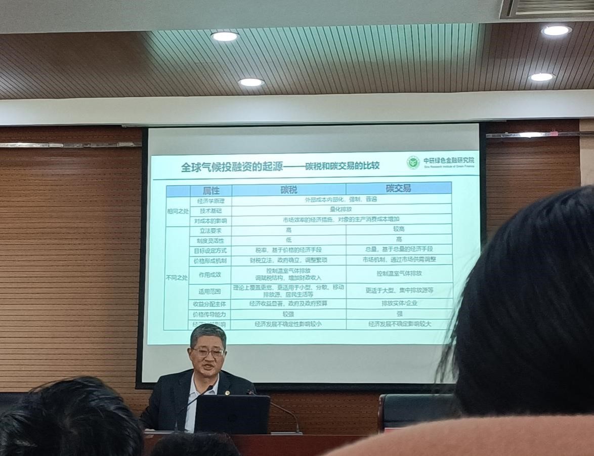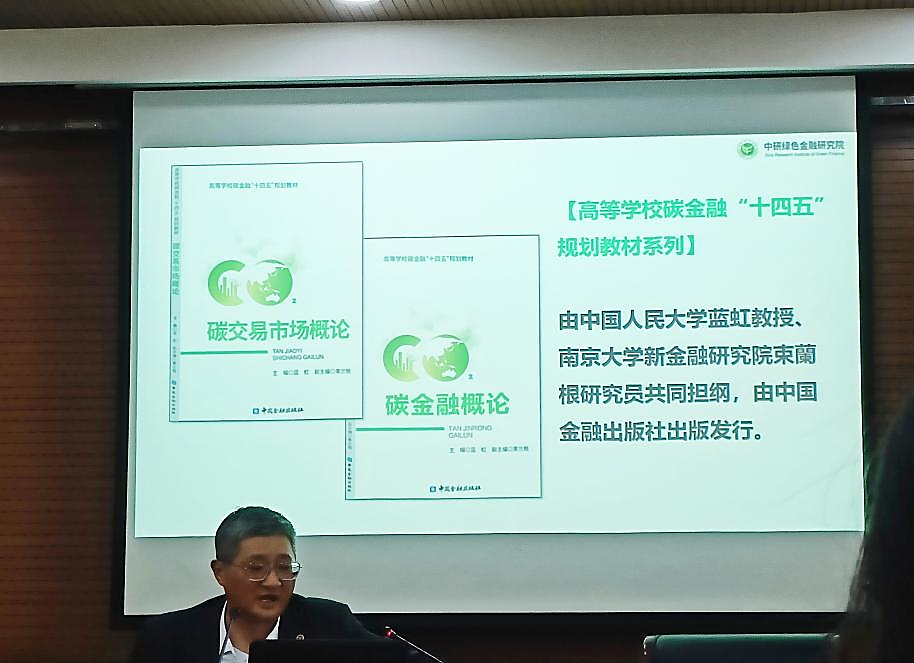 11月22日下午,财经学院邀请江苏省金融业联合会副理事长兼绿色金融专委会主任、中研绿色金融研究院首席专家束兰根教授在三江楼1301报告厅作《中国碳市场发展与碳金融创新》主题报告。报告会由财经学院院长胡绪华教授主持。副院长李靠队教授参加座谈交流。报告历时近三小时,师生踊跃参会,会场座无虚席。