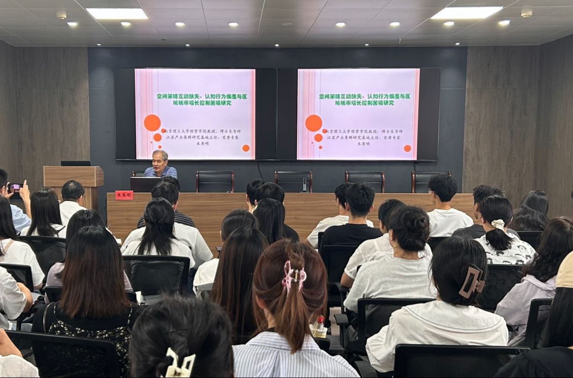9月23日下午,南京理工大学经济管理学院教授兼学术委员会主任朱英明教授应邀来校,在三江楼1301报告厅为财经学院师生举办主题为“空间策略互动缺失、认知行为偏差与区域城市增长控制困境研究”的学术讲座。讲座由校社科处处长杜建国主持。院长胡绪华、财经学院及兄弟学院的百余名师生参加了此次讲座。