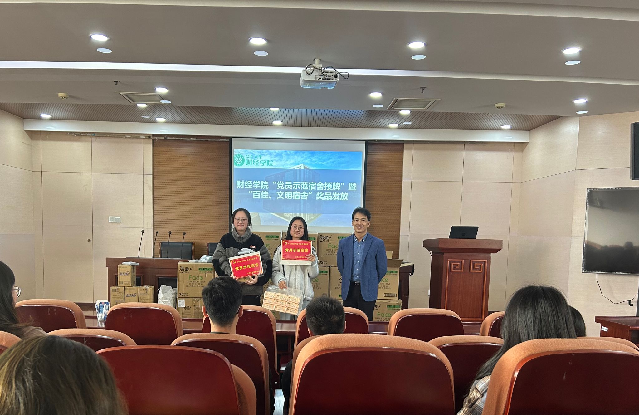为进一步推进学院“安全型、学习型、文明型”社区建设与学生社区党建工作,进一步提升优秀学生宿舍的影响力与示范性。11月21日,我院“党员示范宿舍”授牌以及“百佳、文明宿舍”奖品发放仪式在三江楼1301室举行。财经学院院党委副书记、副院长孙后军、社区辅导员吴思远以及优秀宿舍代表参加仪式。