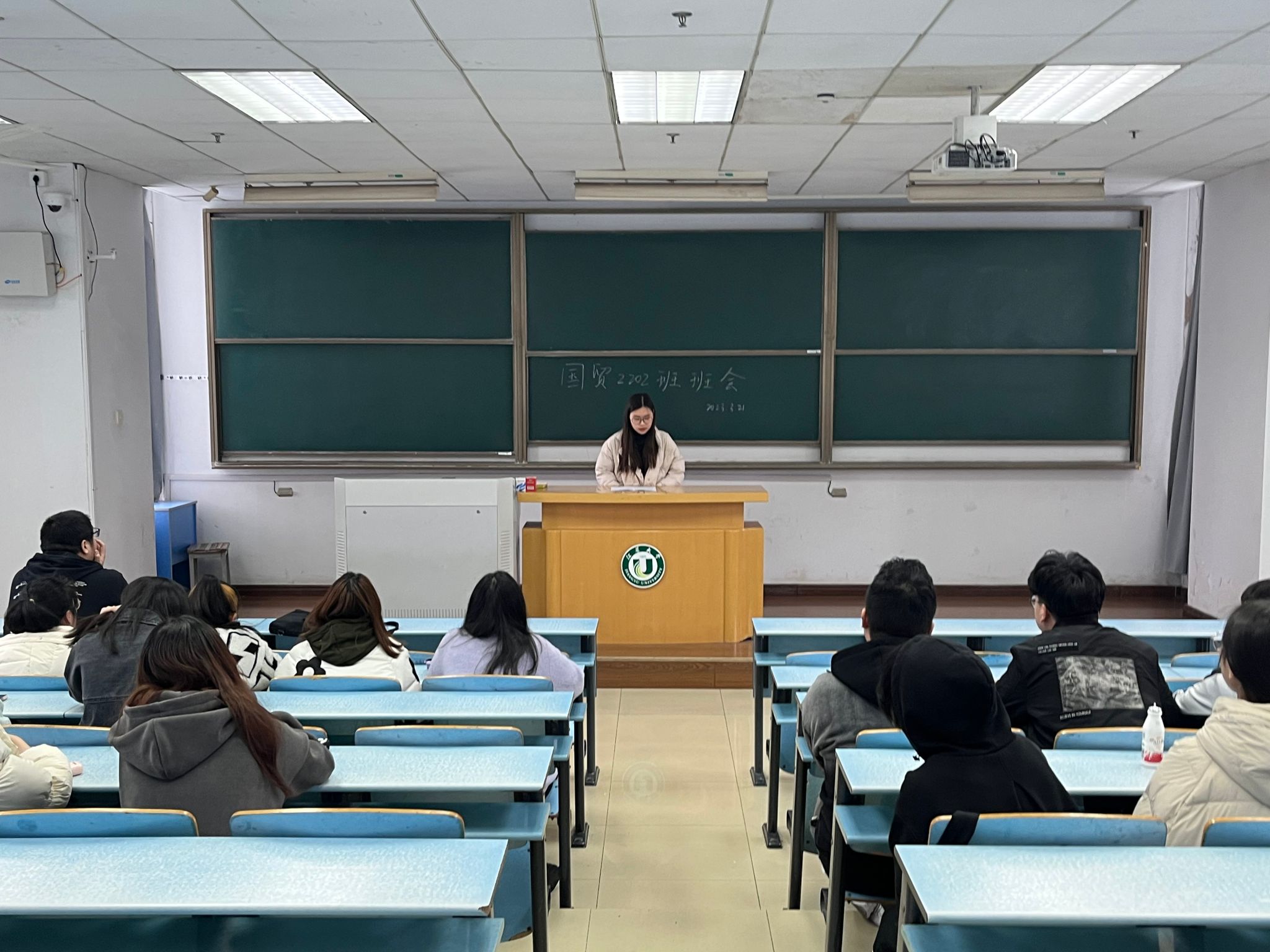 3月21日,财经学院国贸2202班开展学业指导主题班会。班会由班级导生何婷雅主持,辅导员张颖和国贸2202班全体同学参加。