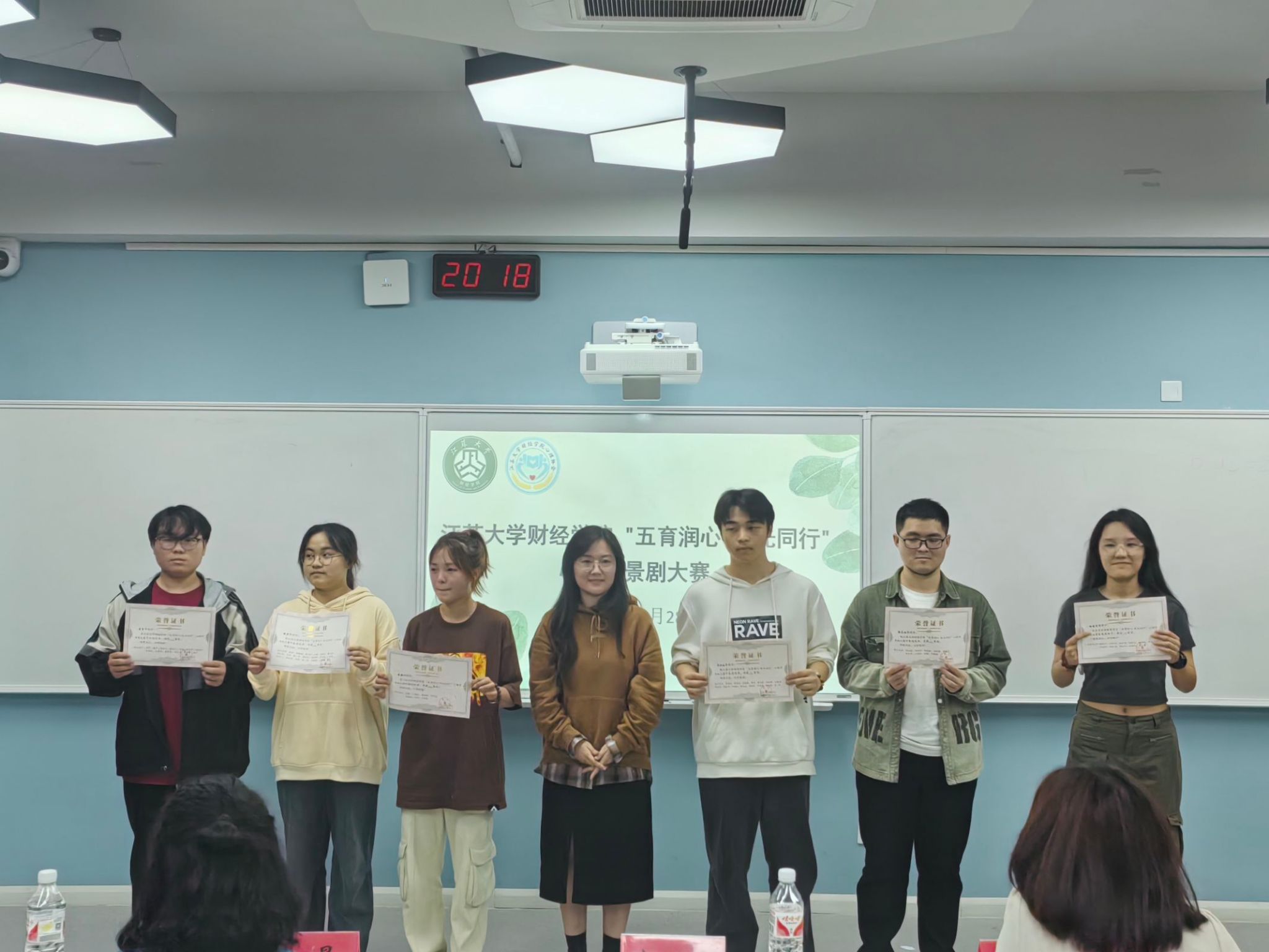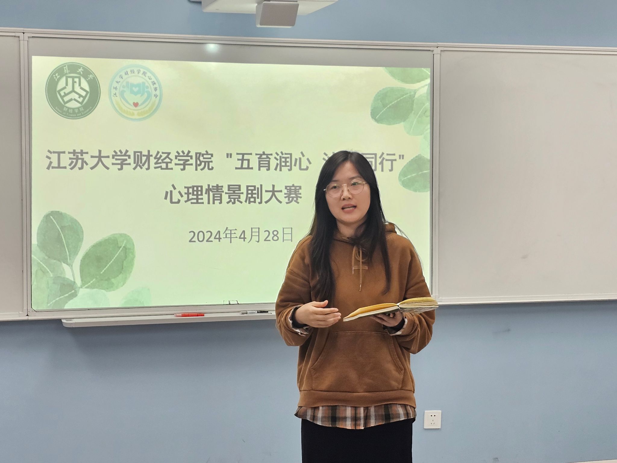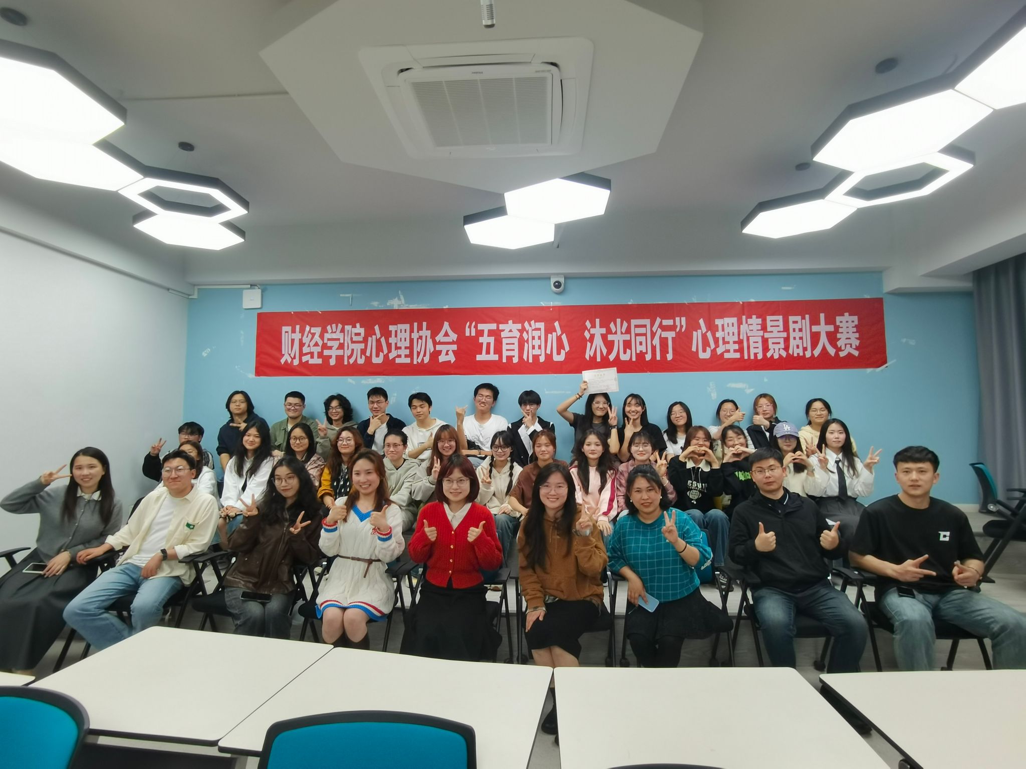 4月28日,财经学院在三山楼 701 教室举办了"五育润心 沐光同行"心理情景剧大赛。比赛邀请心理健康教育中心宋姚飞老师、财经学院全体辅导员担任评委。