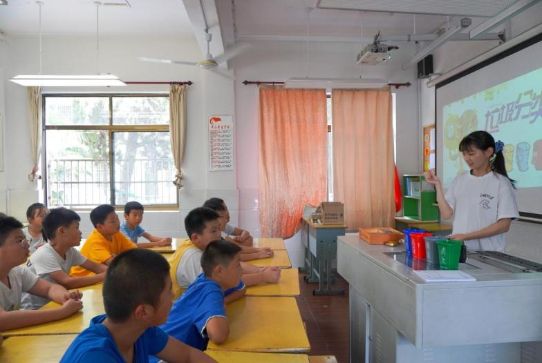 “小朋友们,大家知道,吃完的苹果核是什么类型的垃圾吗?”学校是开展环保理念教育,践行垃圾分类的第一课堂,实践团队志愿者走进学府路小学,为小朋友带来了垃圾分类小课堂。志愿者们为小朋友介绍垃圾分类的意义、生活垃圾的种类,带领大家制作垃圾分类手抄报、开展有奖问答,进一步巩固孩子们对垃圾分类的了解。此外,志愿者将“垃圾要回家”、“垃圾分类飞行棋”等互动游戏带到课堂上,以互动体验和寓教于乐的方式,培养孩子们垃圾分类的意识和习惯。小朋友们兴趣盎然,纷纷表示,要从现在做起,从点滴做起,争做新时代的环保小卫士。