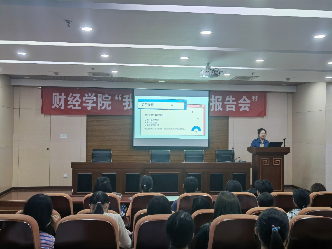主持人言简意赅切入主题后,随即邀请四位学长学姐上台各做分享讲话,四位学长学姐围绕“我的青春故事”主题,依次对于留学深造、考研失利、成功考研以及毕业工作四个子话题进行个人经历的介绍分享。四位学长学姐结合个人独特的经历,为同学们细致解答了“未来该怎样前行”的问题,从不同角度给予了同学们学业上的导向建议。此外,学长学姐们和同学们进行了面对面个人分享互动,在分享后的提问环节更是让参与者畅所欲言,提高了活动现场的积极性。