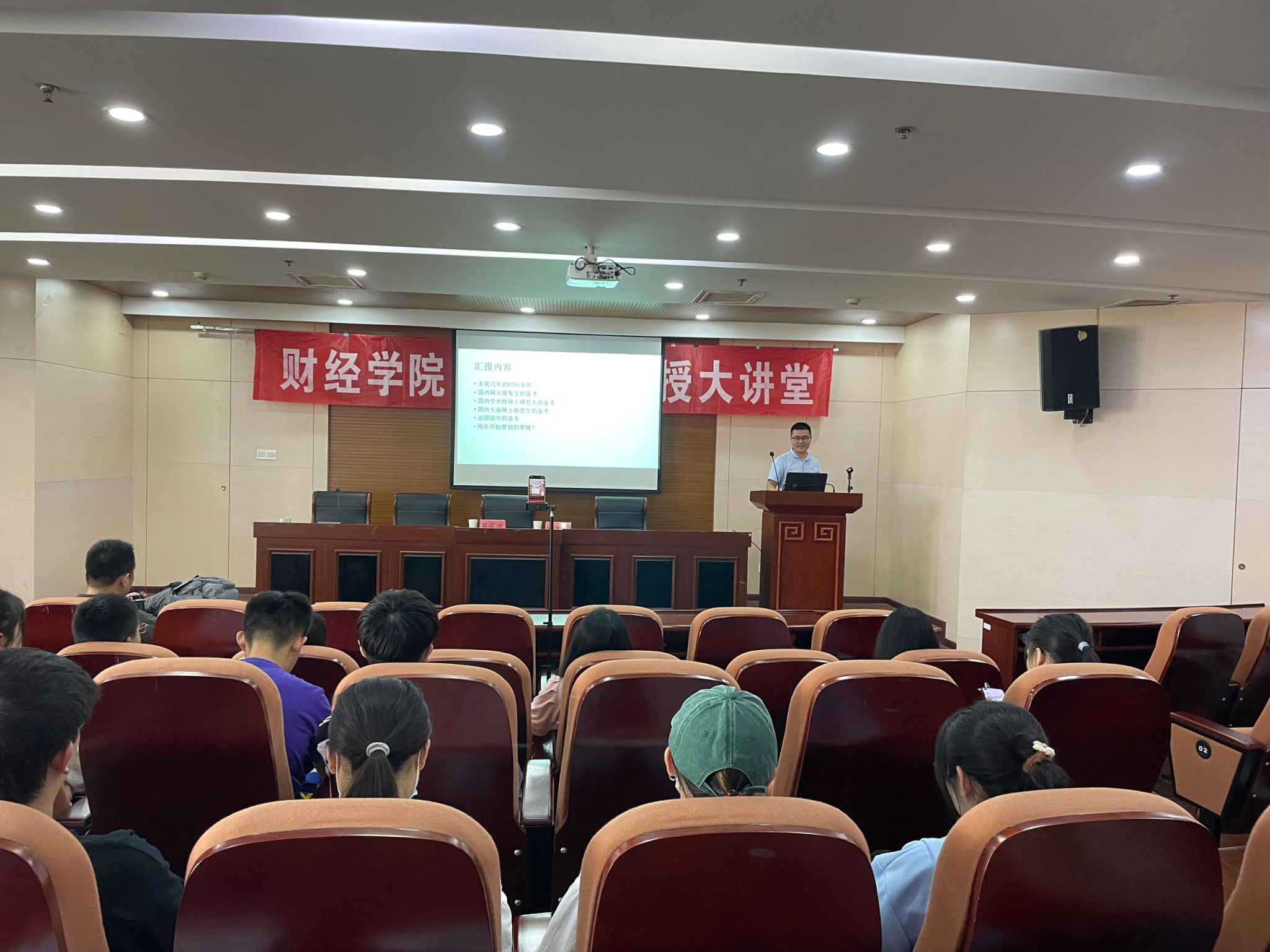 石俊国结合自身考研经历和多年深耕教学的收获与经验,以幽默风趣的口吻从财经类学生生涯规划、财经类考研常考科目、财经类考研考前必要准备三方面展开讲座。他着重强调了考研的重要性,希望广大学生在考研路上努力学习、积极进取、不懈奋斗,最终收获属于自己的奋斗果实。