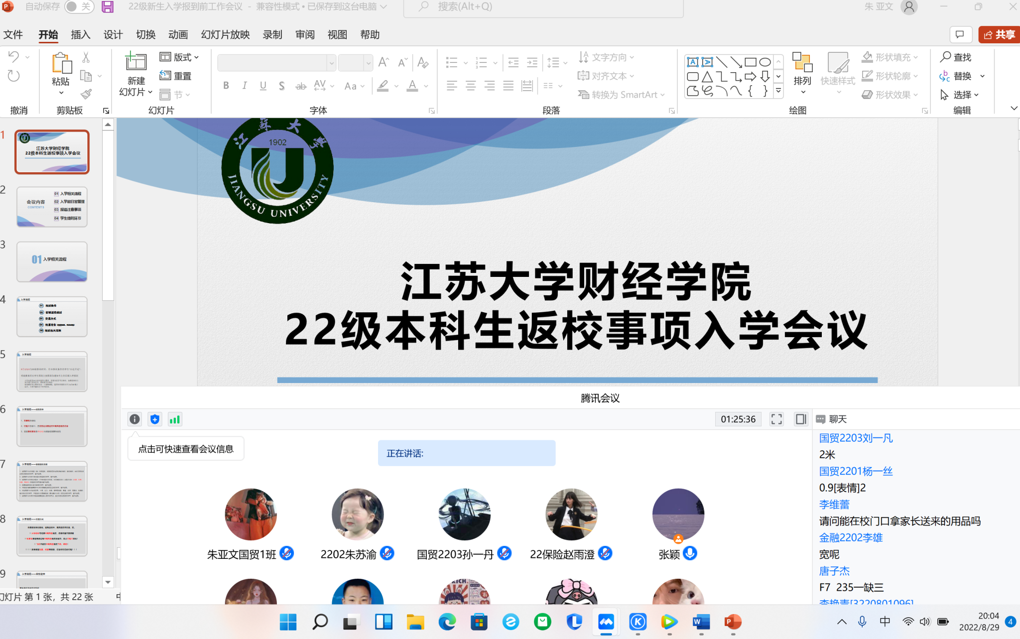8月29日,财经学院通过腾讯会议组织2022级本科生参加新生报到事项入学会议。本次会议由新生辅导员张颖和王辉主讲。
