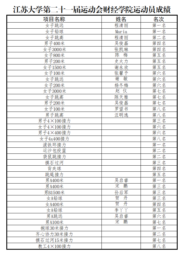 我校第二十一届运动会于11月11日至12日顺利召开,在学院党委、行政的正确指导下,运动员们团结一心、奋勇争先,我院荣获体育道德风尚奖,学生团队获得田径比赛团体总分第二、教工取得总分第三的可喜成绩!