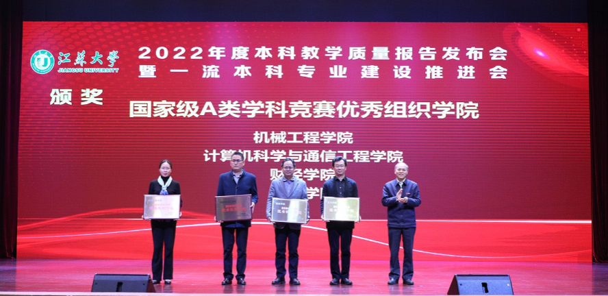 3月9日下午,江苏大学小礼堂召开“2022年本科教学质量报告发布会暨一流本科专业建设推进会”,对2022年本科生教学工作进行总结和表彰。财经学院2022年在大学生学科竞赛中取得突破性进展,位居学校国A竞赛贡献度前四,获颁“江苏大学2022年国家级A类学科竞赛优秀组织学院”铜牌。