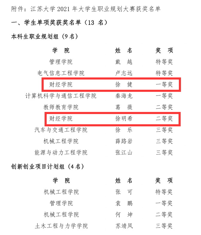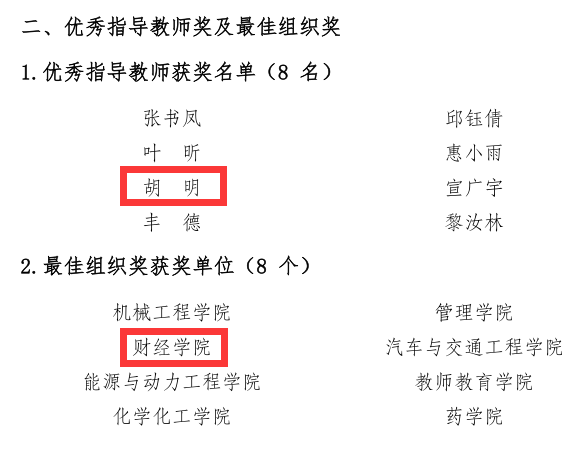 在2021年10月18日结束的“武进人才杯”2021年江苏省大学生职业规划大赛江苏大学决赛中,我院获“最佳组织奖”,胡明老师获“优秀指导教师”,财务1901班徐健同学获本科生职业规划组“一等奖”,统计2001班徐明希同学获本科生职业规划组“二等奖”。